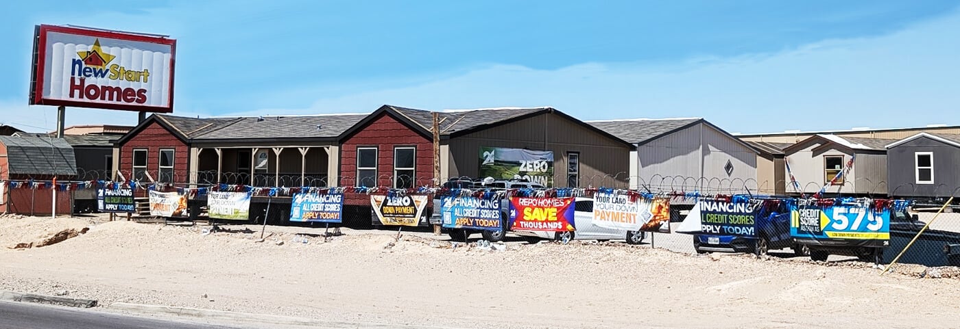 New Start Homes is an Equal Housing Lender. We fully comply with the Equal Credit Opportunity Act (ECOA) and all other Federal regulations. All applicants applying for credit from New Start Homes will never be discouraged on the basis of race, color, religion, national origin, sex, military status, marital status, age, or because you get public assistance. New Start Homes is a licensed manufactured home dealer in the state of Texas. The following states require disclosure of licensing information that can be found by clicking here.